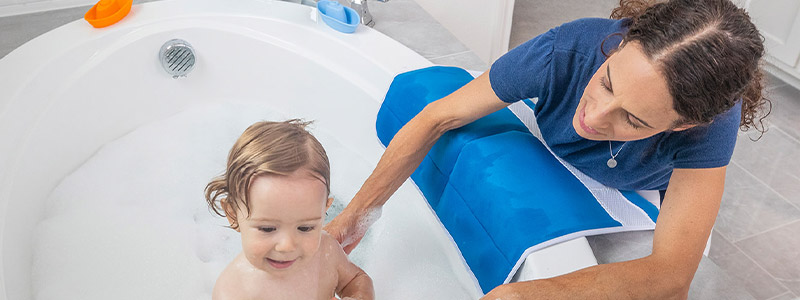 Always ensure an adult stays at the side of the tub, in reach of child.
